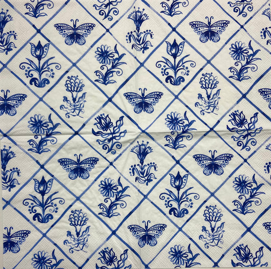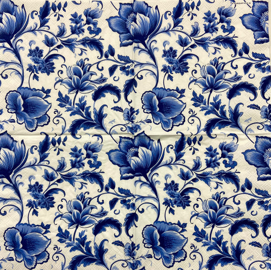 Decoupage Napkins 6.5" (2pcs)- Delft Blue Florals