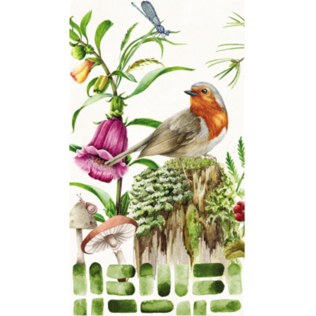 Tags: purple, florals, flowers, foxglove, robin, mushrooms, toadstools, robins, ferns, forest, birds