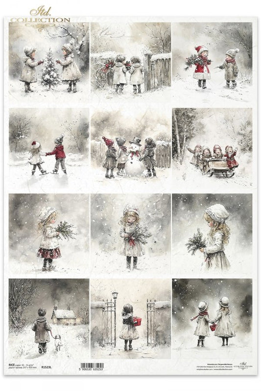Decoupage Rice Paper - Christmas Children Playing (Special Pre-Order)